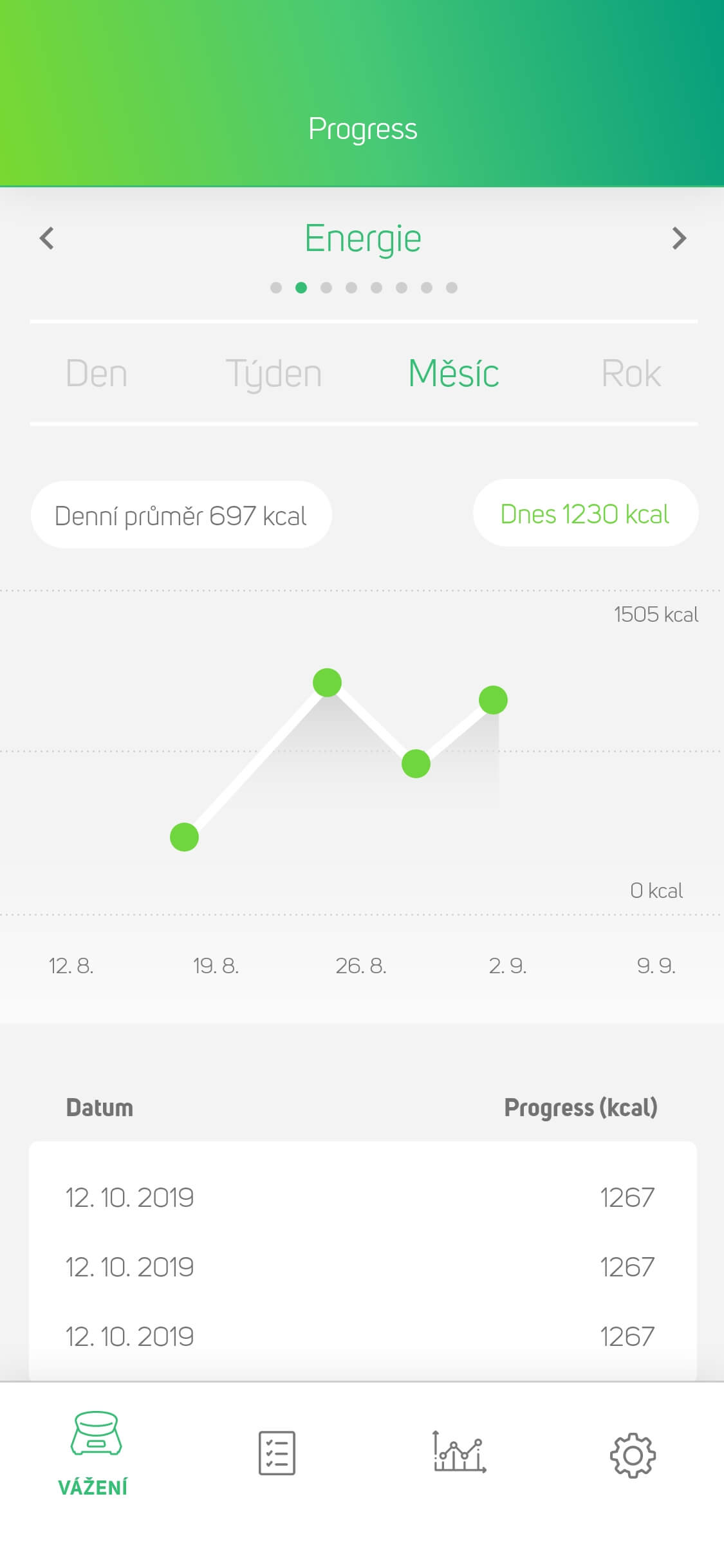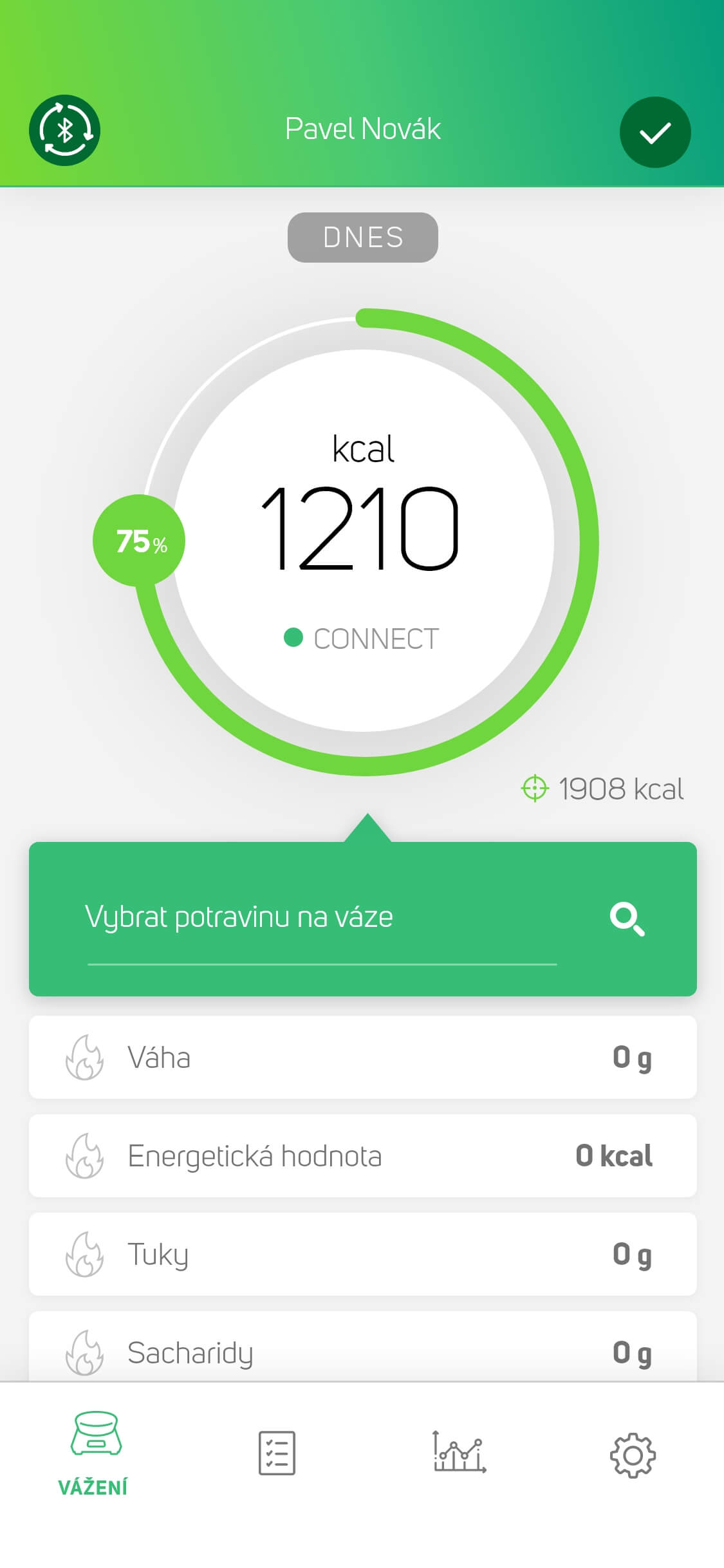 Uživatel může sledovat vývoj veškerých hodnot v čase, od celkového příjmu energie po rozpad na bílkoviny, tuky a podobně. Detailní analýza pak umožňuje uživateli maximálně využít kuchyňskou váhu i aplikaci.